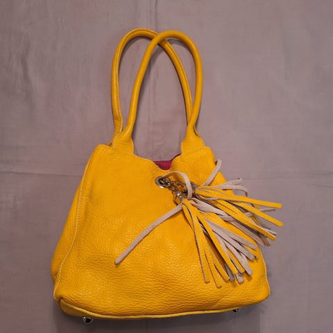 Sokokselta ostettu kaksipuoleinen, musta-harmaa kääntllaukku, keinonahkaa ja puuvilladenimiä. Lev 33.5, kork 31cm, sekä pitkä, säädettävä kantohihna.
