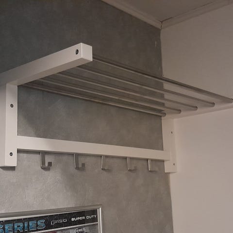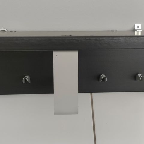 Ikean Logga seinänaulakko, lev 93cm (kiinnityslaatasta laattaan), syv 30cm ja kork 60cm. Pelkästään isompi naulakko tässä myynnissä.