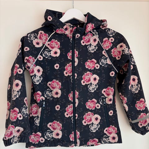 Racoon softshell välikausitakki fleecevuorilla kokoa 128. Uutena ostettu ja parempana takkina ollut pari vuotta käytössä. Siistikuntoinen. Helman ja hihojen kanttinauhassa nyppyä ja vetoketjun vieressä pieneltä matkaa ommel purkaantunut (helppo korjata).