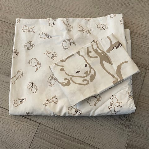 Myyydään hyväkuntoinen ikean pussilakanasetti pinnasänkyyn.