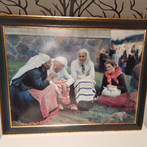Myyn kuvanmukaisen taulun Ruoveden kirkko. Siinä on hyvät kehykset ja lasi päällä. koko 30 x 36 cm. On siisti ja hyväkuntoinen. Hinnan lisäksi postikulut tai nouto Ruoveden keskustasta