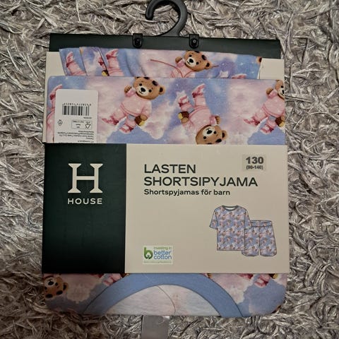 Käyttämätön ja avaamattomassa pakkauksessa oleva lasten shortsipyjama.