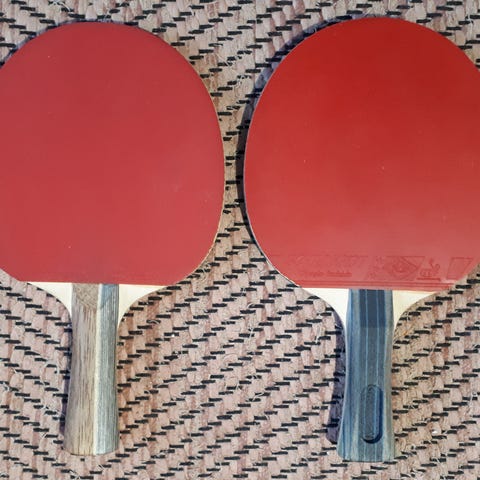 Myydään 2kpl retro/vintage pingismaila. Uskoisin, että mailat ovat jostain 1950-1970- luvulta. Pehmusteet kovettuneet ja vähän repsottavat, mutta mailat paria pientä kolhua lukuunottamatta siistit ja ehjät. Mitat n.28x17cm. Hinta yhteensä 15e.