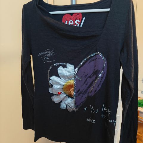 Myydään hyvin vähän käytetty Desigualin puolihihainen paita, koko M. Ohutta, miellyttävää ja joustavaa kangasta. Laskeutuu kauniisti päällä. Pesulappu leikattu pois, kun kutitti kylkeä. Musta pohjaväri, jossa timantinomaisia, värikkäitä kuvioita. Erittäin hyväkuntoinen.