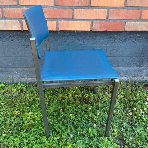 Metallirunkoiset vaneri-istuimelliset tuolit, muuten hyvä kunto, mutta pientä pintakulumaa 6 kpl