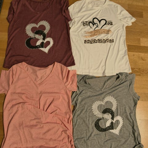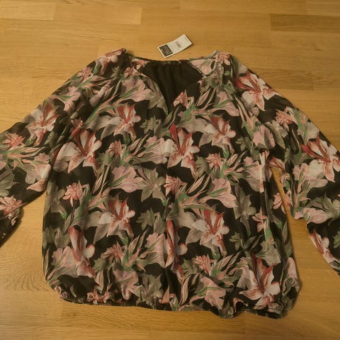 Paita, koko M, kaulus joustava, hihoissa ja alahelmassa kuminauha.