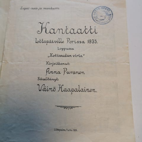 Vuonna 1937 kulkenut kirje, jossa 5kpl leimaa,Heikki Klementin sekä Eeva Oulan & Jaakko Tuurin Lotta-laulujen nuotit ja sanat, kenttäpostikortteja kirjallisuutta ja kaksi 'hieman matkalla kärähtänyttä' kirjekuorta + kirjettä v. 1939;