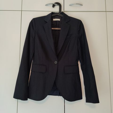 Pori Finland, punainen, raidallinen Jakku, edessä-ja hihansuissa napit, taskut, koko S, materiaali puuvillaa, mitta kainalosta kainaloon 58 cm edestä mitta, hihan mitta kainalosta hihan suuhun 51 cm, mitta olalta helmaan 82 cm.