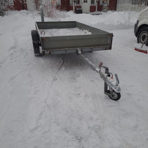 Lähinnä puun kuljetuksessa käytössä ollut traktorin peräkärry, kulunut mutta ajaa asiansa. Kärryssä ei ole kippiä.