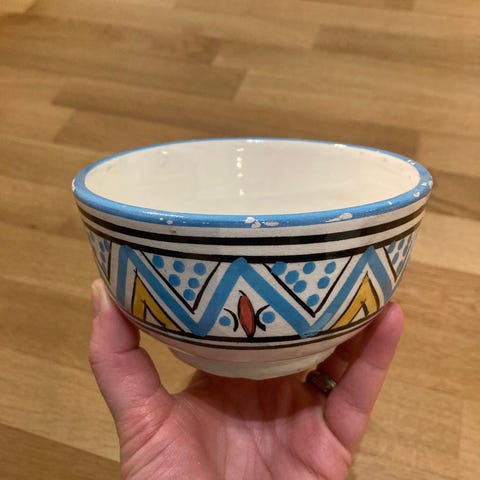 Savikulhon korkeus 11 cm ja suuaukon halkaisija on 15 cm