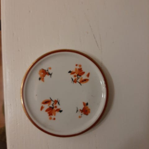 Hyväkuntoinen teekupin (?) aluslautanen, ei juurikaan käytönjälkeä. Tarjolla 1kpl. Halkaisija 16cm, kupin syvennys 5,5cm.