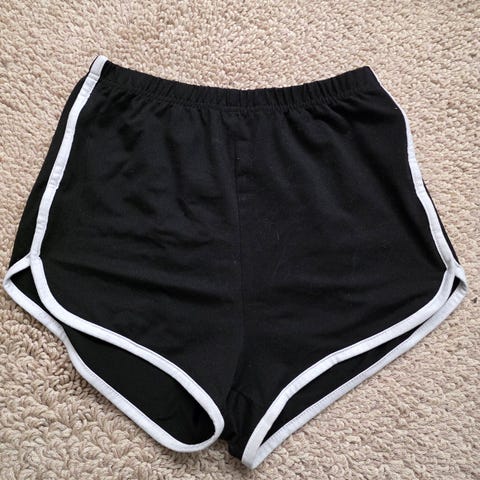 Naisten mustat shortsit koossa S. Vyötäröllä on kuminauha ja solmittava nauha, joka mahdollistaa säätämisen. Lahkeet ovat väljät ja pituus on reiteen ulottuva. Sopivat arkipukeutumiseen ja vapaa-aikaan lämpimällä säällä.