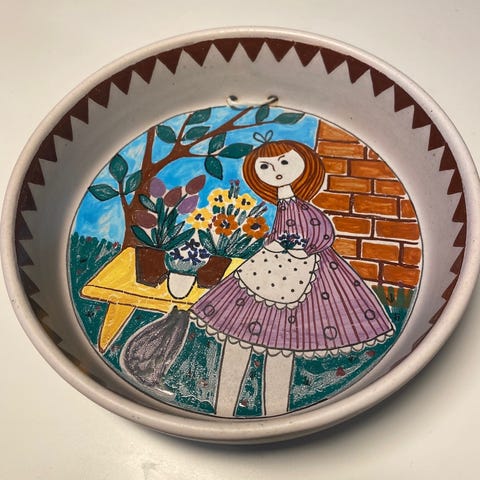 Käsinmaalattu Kupittaan Saven seinäkulho/-lautanen, suunnittelija Laila Zink. Signeerattu, halkaisija noin 17 cm, syvyys 4,5 cm. Kunto hyvä. Nouto tai lähetys.