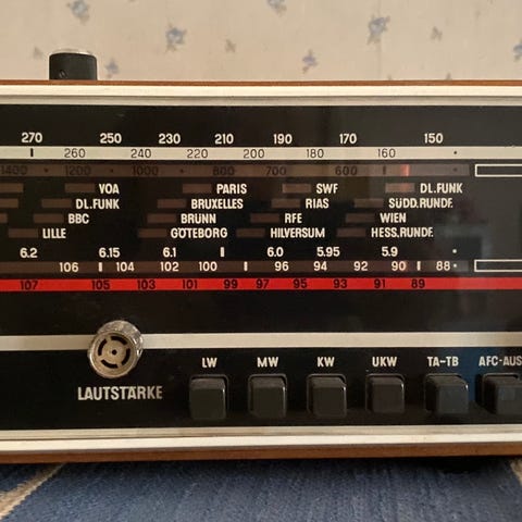 Ei aavistustakaan iästä. Ehkä 70-lukua? Laitoin 9V pariston ja jotain suhinaa kuuluu, mutta kanavia ei löydy. Toimiiko sitten jollain vanhoilla taajuuksilla?