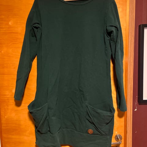 Ethän tingi. Kaunis ja monelle hyvin istuva L koon musta luomupuuvilla mekko hame tunika. Venyy ja joustaa XL kokoiselle asti. Mukava päällä ja kestävä materiaali.