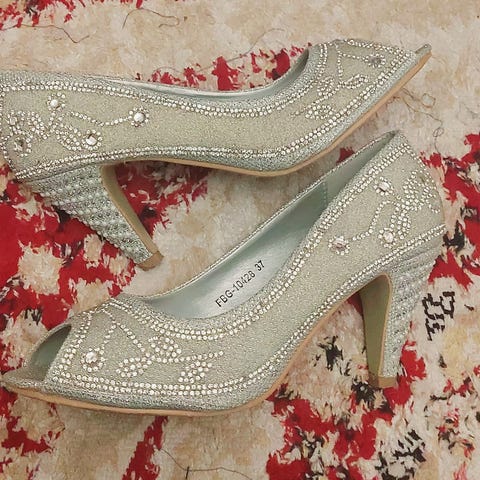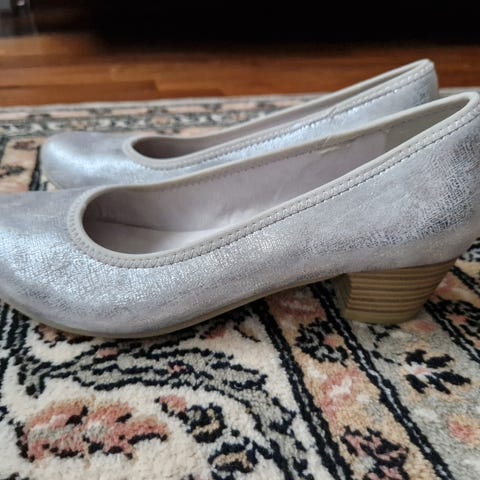 Edullisesti kaikenlaisiin juhliin käyttämättä jääneet trendikkäät hopeanväriset korkkarit 7 cm:n korolla. Ostettu Ellokselta, synteettistä materiaalia. Jalkapöydän yli meneviä kahta remmiä voi säätää itselle sopivaksi. Kantapäässä kivat koristeleikkaukset. Sisäpituus kengissä on 25,5 cm.