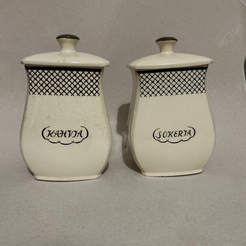 Myydään Arabian valmistama virheetön emalipurkki. Koko 12cm, leveys 11cm.