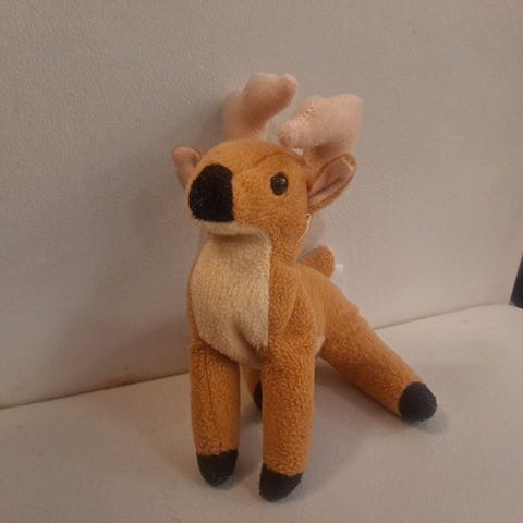 Polarn O. Pyret pieni sinivalkoraidallinen pupu, pituus korvista varpaisiin 12 cm. Erittäin siistikuntoinen.