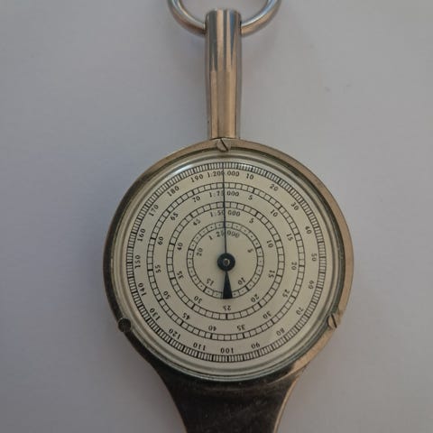 Myydään messinkinen karttamittari, malli III. Suomen Puolustusvoimien käytöstä poistama. Käyttämätön ja alkuperäisessä pahvisuojuksessa. Löytyy muutama.