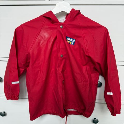 128 cm, kirsikan värinen sadetakki, nepparit toimivat