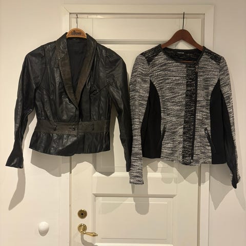 Tuffel - takki beige ja t.ruskea,valkoinen nahkatakki S