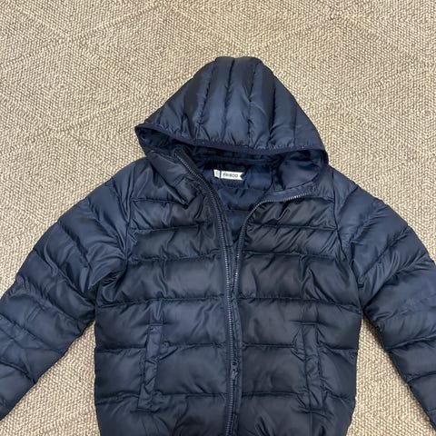 Musta-harmaa kevyttoppatakki koko 130cm. Vetoketjutaskut edessä. Ehjä ja siisti.