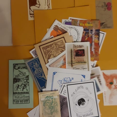 Myydään E J Ellilän hyväkuntoinen nahkakantinen signeerattu ja numeroitu kappale 59 (/100). Painovuosi 1949. Aitoja exlibriksiä numerosta 17 eteenpäin.