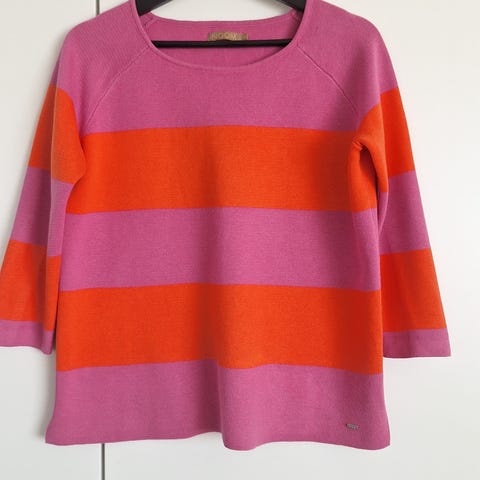 Raidallinen paita, harmaa pohja ja valkoiset raidat, uusi, siisti, ehjä, merkki: Noom, koko L