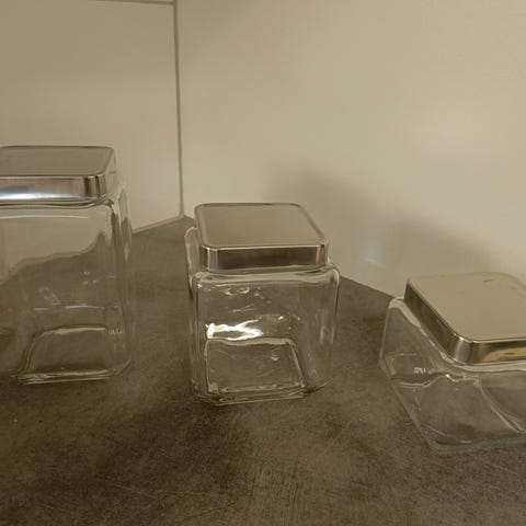 Hyväkuntoiset lasipurkit esim. mausteiden säilytykseen. Kansi muovia. Purkit seisovat hauskasti myös kyljellään, katso kuva. Vetoisuus 2dl