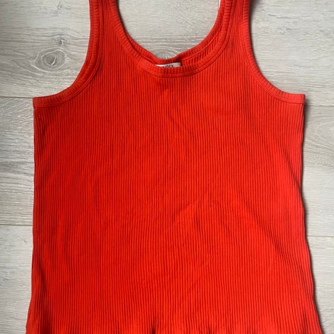 Kevyt, ilmava toppi Lindex Holly & Whyte koko M. Oranssinpunaisia ja valkoisia kuvioita. Olkaimen leveys 4 cm. Takapituus 50 cm. Kainalosta kainaloon ympärysmitta 108 cm. 100 % polyesteri. Postimaksu 7,90 Eur.