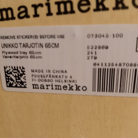 Marimekko Lamppupampula vaneritarjotin 27 x 20