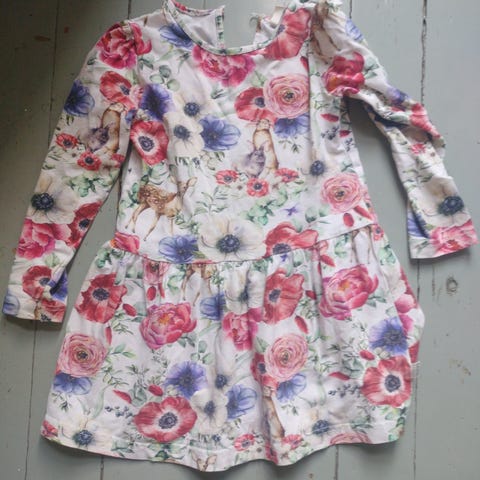 Kesäinen kukkamekko tyllialushameella, koko 110 cm