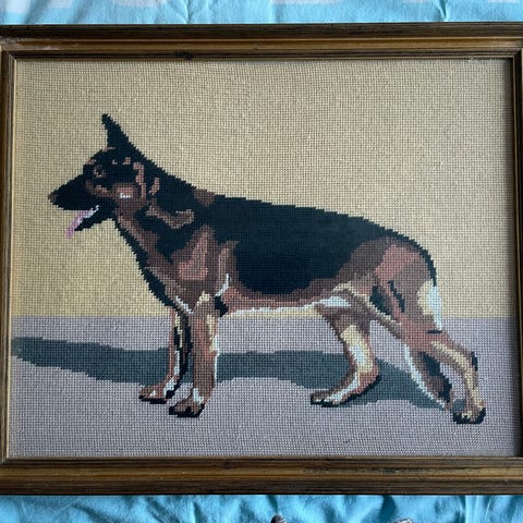 Myyn kuvanmukaisen kanavatyötaulun susikoira. Siinä on kauniit hyvät kehykset ja lasi päällä. On hyvin tehty. Koko 38 x 29 cm. Hinnan lisäksi postikulut tai nouto Ruoveden keskustasta.