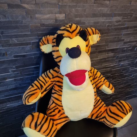 Uusi, lappu vielä korvassa kiinni. Jätti Tikru, giant Tigger lukee lapussa. 90cm mitattuna kun istuu. On yli 100 maksanut. Tällä Tikrulla ei ole leikitty, on aivan uudenveroinen.