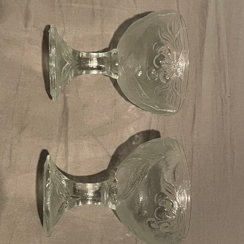 *Kaksi ohutta, sinistä, kauniisti läpikuultavaa lasimaljaa