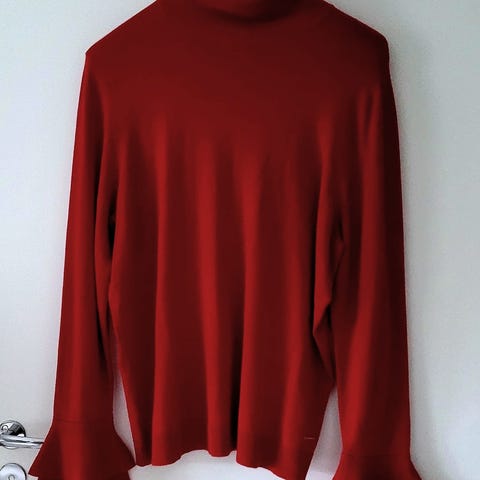 Kauluksen tyvessä pieni purkautuma,saa varmasti korjattua,joka osaa. Muuten pusero kuin uusi, käytetty ainoastaan kahdesti.Pusero on todella paksu ja lämmin.