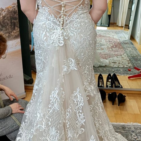 Myydään käyttämätön Sis idman Sofi - merkkinen hääpuku koko U12. Tilattu 180cm pituiselle, itse olen 170cm. Ei tehty mitään muokkauksia vaan on ihan alkuperäisessä kunnossa. Väri ivory/blush. Kaunis näyttävä laahus. Säilytetty pukupussissa sisätiloissa. Pukupussin saa mukaan halutessaan 😊