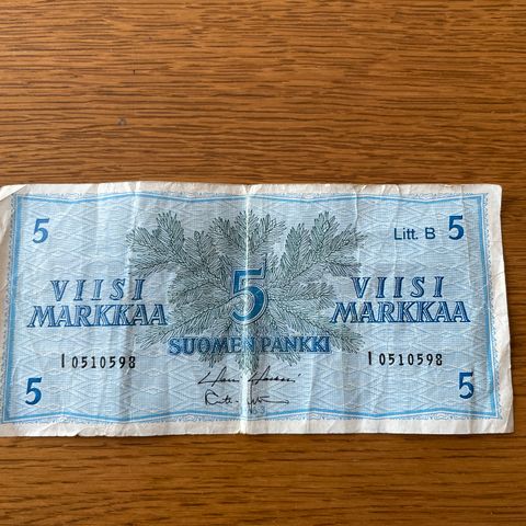 Myynnissä Suomen setelit.Kymmenen markan seteli v.1963.Viiden markan v.1063.Yhden markan setelit v.1963.