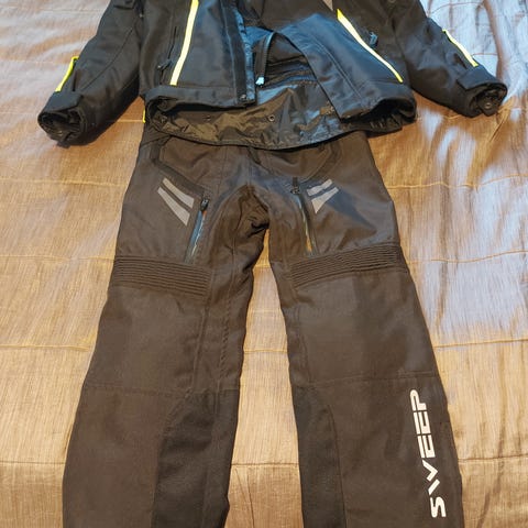 Sweep Wolverine 2 ajotakki ja -haalarit sekä kengät (39) ja HJC:n kypärä puhelimella. Kesähelteille naisten takki kokoa 32. Nouto henkilökohtaisesti ja maksu MobilePay.