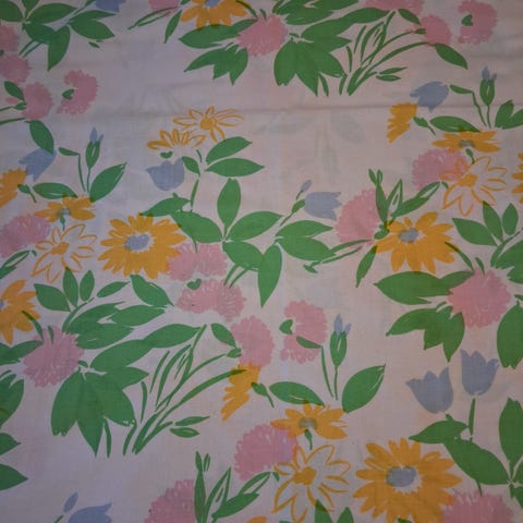 Myyn Marimekon "Kioto" -kankaasta ommellut 2 kpl verhokappoja (kork 41,5 cm, lev 134 cm) 1 kpl sivuverho (lev 59 cm, pit/kork 138 cm).