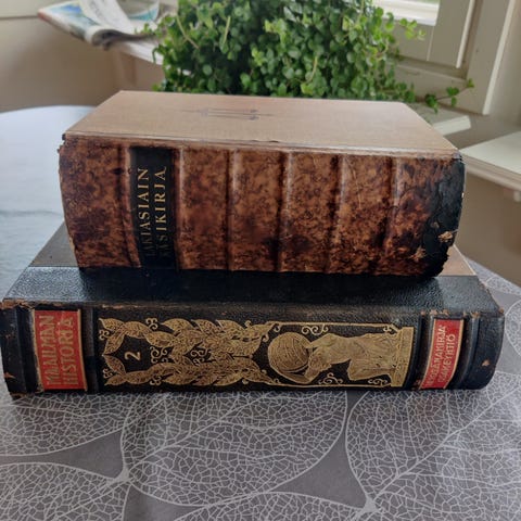 Kuvan 4 kirjaa vanhoja hyvässä kunnossa olevia. Noutona.