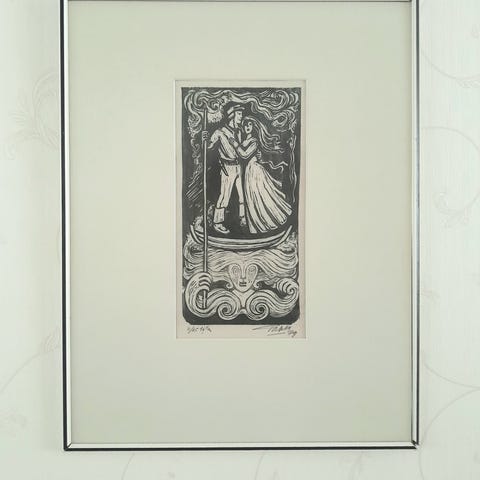 Tapani Mikkonen "1,4" 9/15 vedos mitat kehysten päältä korkeus n.85cm leveys n.66,5cm vedos kuva-ala n.68x51cm, uudet kehykset