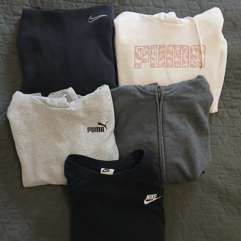 Myydään Puma-merkkinen vaatepaketti, jossa 3 T-paitaa kokoa naisten M (pieni koko), turkoosi lyhyempi huppari 38 (pieni) ja ruskea huppari kokoa 36. Kaikki hyväkuntoisia. Nouto Latokaskesta, Espoosta tai postikulut ostajalle.