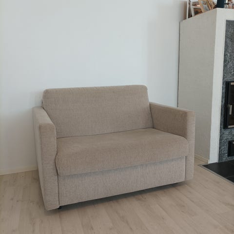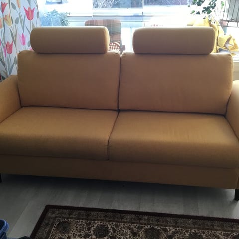 Sohvan saa sängyksi kätevästi, siinä ei ole kuitenkaan koskaan nukuttu eli uutta vastaava.