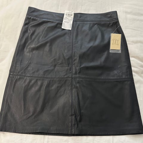 Myydään Lindebergin uusi hame nahkasomistein . Kokolapussa lukee L. Sopii minusta parhaiten M/L-kokoiselle. Nouto tai postitus kuluja vastaan. Laput kiinni edelleen.