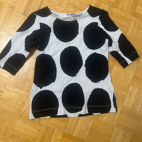 Hyväkuntoiset Marimekon hame koko M ja paita koko S. Hameen mitat: vyötärö-helma 52 cm, vyötärö 70 cm. Hameessa on kivat taskut sivusaumassa. Paidan mitat: kainalo-kainalo 45 cm, niska-helma 58 cm. Hinta hame ja paita yhteensä 30 euroa + postikulut 6,90 euroa. Nouto Lahdesta myös mahdollinen.