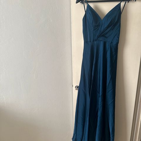 Kirkkaanpunainen näyttävä juhlamekko, materiaali joustavaa trikootyyppistä, helmassa pieni laahus ja selässä näyttävä strassikoristelu, koko xs.