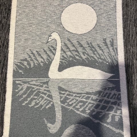 Vanhan ajan sängyntausta seinävaate n. 120x82 hapsujen kanssa.