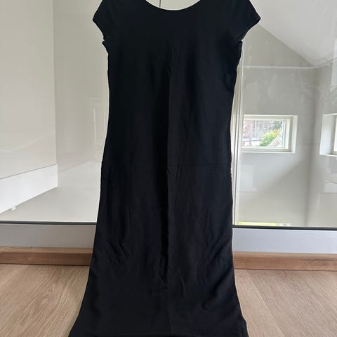 Musta mekko josutavaa pehmeää materiaalia. Vyötäröllä säädettävät nauhat. Koko 34 mutta menee isommallekin.