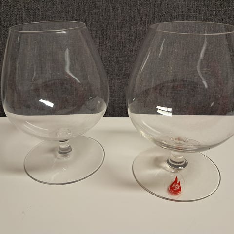 Kirkkaita Konjakkilaseja, kork. n. 11 cm, suun halk. 5.3 cm, ehjät.